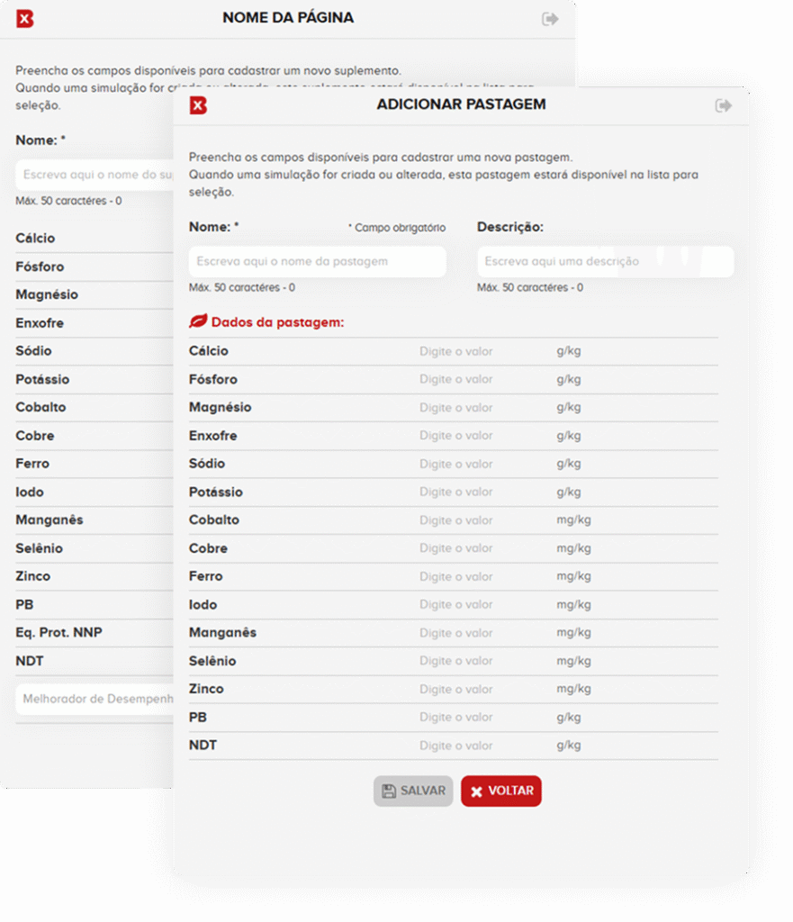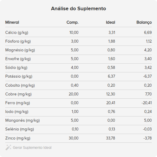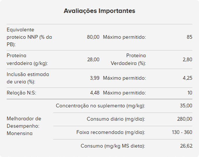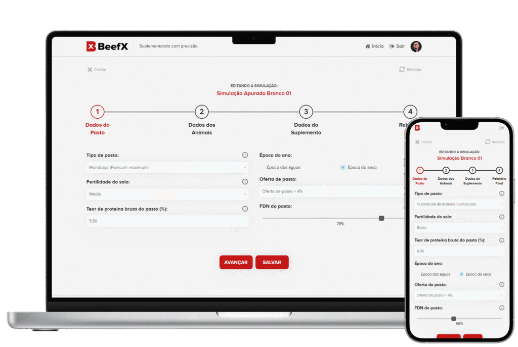 Basta informar os dados do pasto, dados dos animais e dados do suplemento que pretende utilizar na simulação.